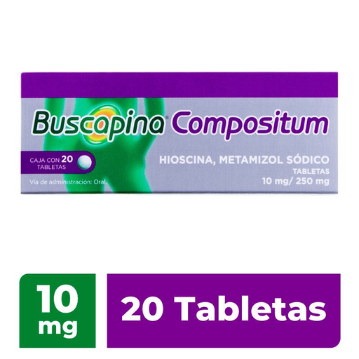 Buscapina Compositum Hioscina/Metamizol Sódico Tabletas 10 mg/250 mg Caja C/20 Tab. Sonofi
